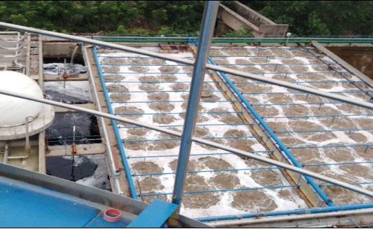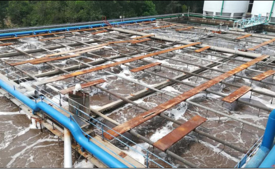 處理水量6500t/d,采用IC厭氧——好氧生化工藝,老系統水池:有效水深5m,有效體積6120m3;新系統水池:有效水深5m,有效體積3500m3。安裝290臺TL-900旋流微泡曝氣器。
